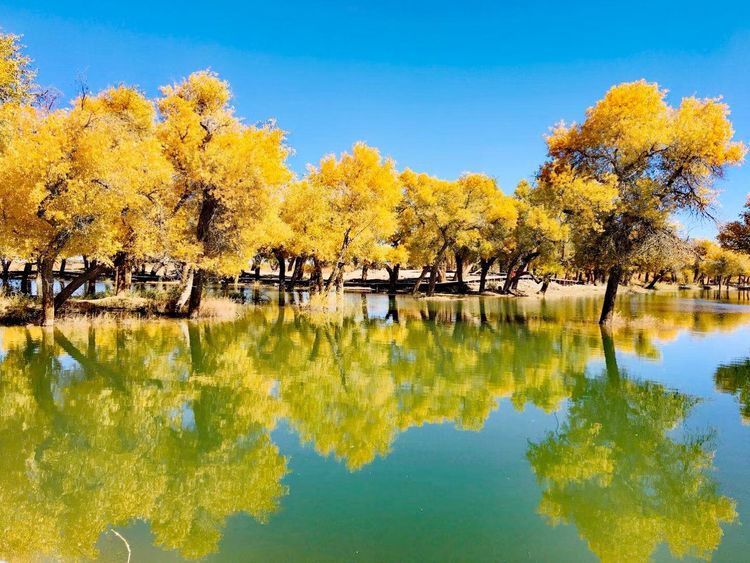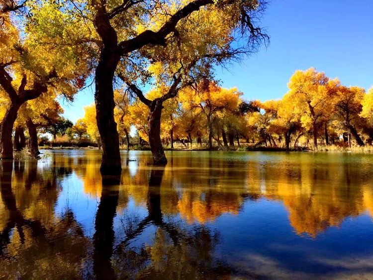 此时灿烂金黄的胡杨正诠释着全中国最纯粹的秋色