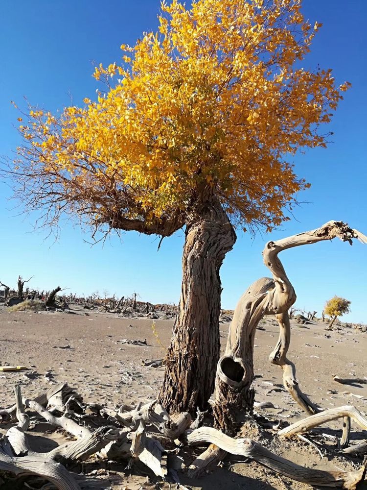 额济纳的胡杨用三千年的守望,等来一个又一个绝美的秋天。 此生定要去看一次胡杨,看那释放的生命能量惊艳天地。 这里的每一棵树,都有一段传奇的故事,等待你来倾听。