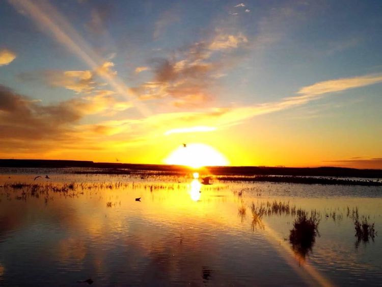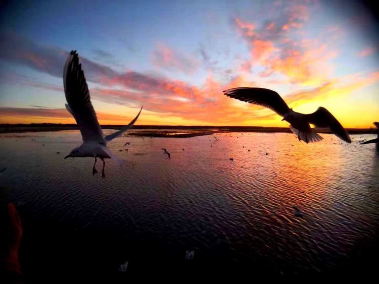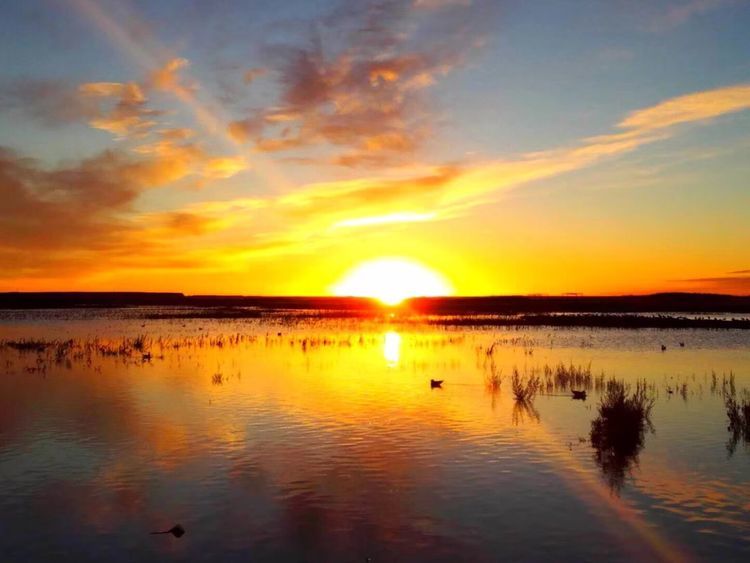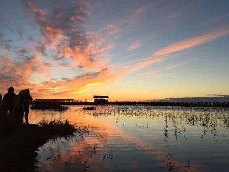 长长的车队都是为了那一眼居延海芦苇荡壮观日出;
