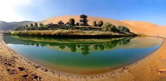 鸣沙山月牙泉就被誉为塞外风光之一绝 鸣沙山被誉为我国最美的五大沙漠之一 神奇的月牙泉 泉内生长有眼子草和轮藻植物 南岸有茂密的芦苇,四周被流沙环抱,虽遇强风而泉不为沙所掩盖。 因“泉映月而无尘”、“亘古沙不填泉,泉不涸竭”而成为奇观。 相传泉内生长有铁背鱼、七星草,专医疑难杂症,食之可长生不老,故又有“药泉”之称,这也是敦煌这片神奇的土地赋予人类的最好财富。