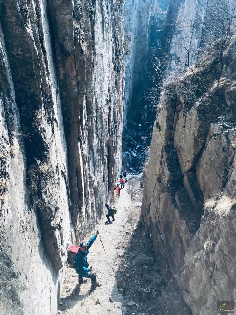 2019.元旦徒步南太行 猫路~鹅屋~天生桥~万佛寺~瑛姑峡 万佛寺 是一个很小的无人住持的野庙,庙建在一个孤零零的小山顶,四周是悬崖。 庙中的供奉五花八门的,林林总总的神仙,不管你求什么总有你的一款,小庙要进到最上层,还需要钻过一道窄窄的石缝,寺的对面有一个戏台,与庙相对。 “瑛姑峡”,传说战国时期南掌村的英姑丈夫参加围魏救赵战役战死疆场,英姑思夫心切每日守望,最后化为石柱的故事而得名。 “瑛姑峡”:典型的喀斯特地貌,层峦叠嶂,奇峰耸立,很有些张家界的味道。整个峡谷完全荒废,台阶路年久失修,路上杂草丛生,台阶路可能是为了旅游开发而修的,估计最终因为来的游客太少而放弃,于是乎就衰败成现在的模样了。 峡谷内的台阶陡峭,两边石壁峭拔无比!