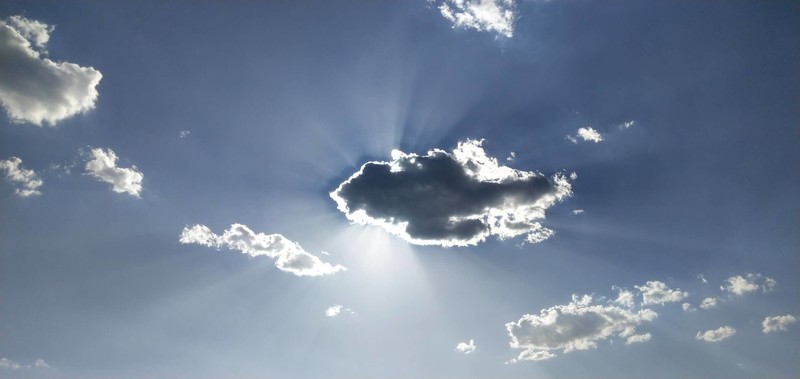 耀眼的太阳光不知何时被一朵浓重的云朵遮挡,少了刺啦啦的热感,猛一看,我笑了。怎么看怎么琢磨,那云朵,怎么特别像一条散发光芒的“金”鱼,来普度众生的喜感呢。感官这东西,你看像什么就是什么了,只要心中涌动喜悦,这就够了。 留恋、不舍,涌上心头,那一刻,天人合一,人类的渺小存在,也变得微不足道了。